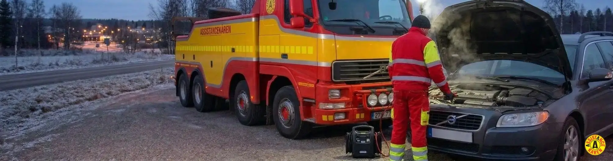 - Bärgning som plan B: Om bilen av någon anledning (t.ex. ett helt kortslutet batteri eller motorfel) inte går att starta, hjälper vi dig direkt med bärgning till närmaste verkstad.